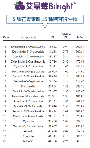 而標準化歐洲越橘提取物的規格,其 UV(花青素色苷)≥25%相當於 HPLC 法測得的(花青素色苷)≥36%,所以許多廠認定只要能夠驗到 UV≥25%就可以聲稱HPLC ≥36%,但這樣一定是對的嗎?